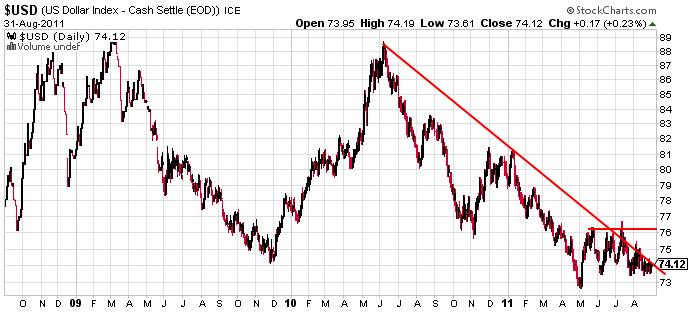 No hace falta traer ninguna portada o ninguna muestra del sentimiento sobre el dólar. Nadie quiere dólares. Se dice que EEUU al haber pasado de ser una nación acreedora a una nación deudora, el fin del imperio está cerca y que los chinos son los próximos amos del mundo (a pesar de que son 0 creativos y lo copian todo). Se dice que los QEs han sido como cuando los emperadores romanos protituian los denarios, un evento que fue antesala,según los historiadores, de la decadencia de Roma (aunque no se recuerda lo suficiente que Roma estuvo decayendo varios siglos y que pudo haber muchos mercados bull para el denario contra la divisa barbara).