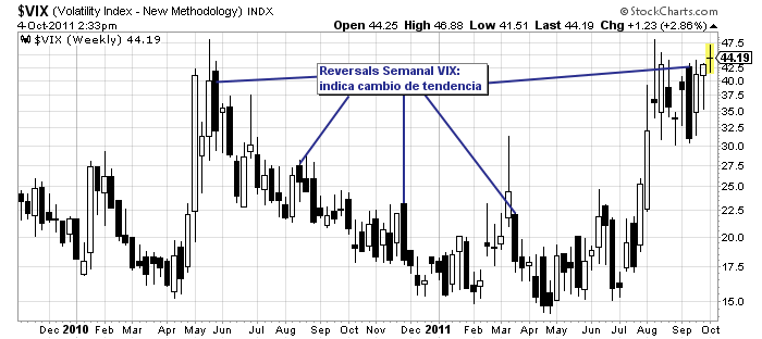 Los dos reversals presentados por el VIX en base semanal, no han sido cancelados y sospecho que no se cancelarán. El suelo de mercado está cerca y los que compramos ganaremos mientras los demás se quedarán señalando la luna mientras esta se movía.