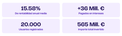 Hasta la fecha, los inversores han ganado 36,7 millones de euros en intereses, logrando un rendimiento anual medio del 15,24%.