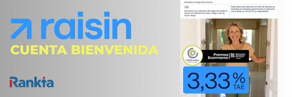 La Cuenta Bienvenida Raisin es una cuenta de ahorro promocional lanzada por Raisin, el banco alemán del grupo Raisin, que permite obtener una rentabilidad del 3,33% TAE durante tres meses. Está pensada exclusivamente para nuevos clientes que quieren empezar a ahorrar sin comisiones, sin domiciliaciones y con total disponibilidad del dinero.