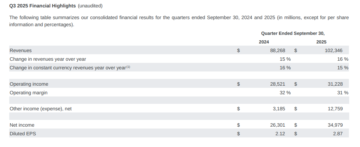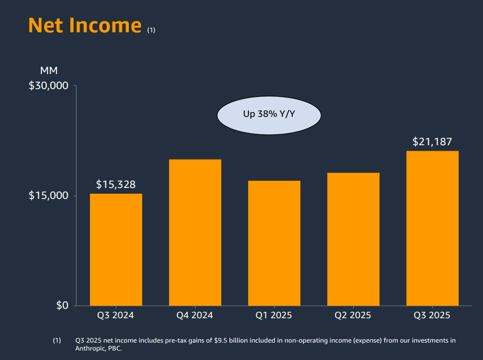 El beneficio neto ($21.2 B) incluye una ganancia extraordinaria de $9.5 B por la inversión en Anthropic.