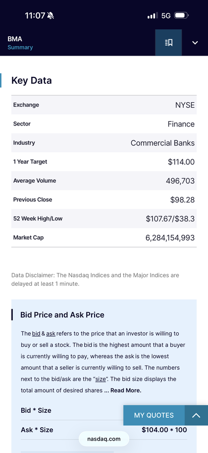 Ya saben que no puedo aconsejar legalmente, ni comprar ni vender ni mantener, acciones de Banco Macro (BMA), yo ya he vendido y cierro mi operación cerca de precios objetivos no me acerco al sol no es necesario, además los problemas que revolotean sobre el gobierno de Milei siguen ahí y para que volar más.