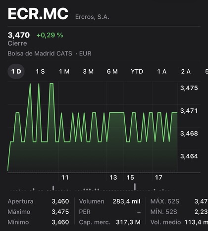 No puedo aconsejarles legalmente vender acciones de Ercros pero esta historia va llegando a su fin, no creo que tarde mucho en darle puerta, haré captura y se lo mostraré en un futuro cercano.