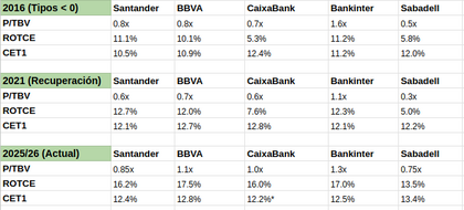 Buen post, como casi siempre ;P y, desde luego, coincido con que la participación de Enrique lo hace todavía más interesante. Yo no tengo ni idea de valorar casi nada, y mucho menos bancos, pero lo que sí se es que un banco no se puede valorar por los ratios "normales", así que le he preguntado a la IA, que es gratis y seguro que alucina mucho menos que yo.