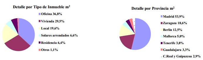 Los activos de la compañía se tratan exclusivamente de activos inmobiliarios de los cuales muchos son propiedad de la empresa y uno, en San Sebastián de los Reyes (Madrid), está en Leasing. La empresa dispone de un total de 52.734 m2 repartidos de la siguiente forma:
