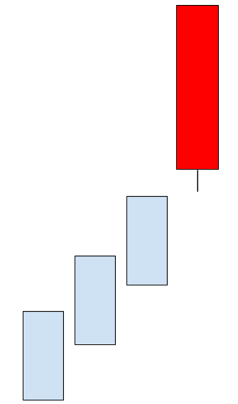 El apoyo ceñido bajista es una figura que se crea tras una larga tendencia alcista, donde le sigue un gap alcista y un marubozu abierto bajista. El marubozu bajista se crea porque las fuerzas alcistas han empujado demasiado arriba al precio, y empieza una venta fuerte por parte del mercado bajista. Al ser una pauta de vela única, la fiabilidad es baja, y se necesita confirmación de cambio de tendencia con la siguiente vela. Cuanto mas largo sea el marubozu mas fiable es el patrón.