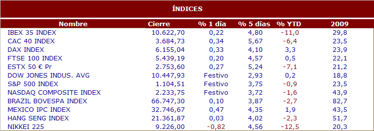 *MACQUARIE: Según informaba ayer Financial Times, el mayor banco de inversión australiano informó ayer que sus resultados 1S10 quedarán por debajo de las previsiones del consenso por las difíciles condiciones de mercado. Al mismo tiempo, la compañía también informó que prevé unos resultados en línea con los del año pasado.