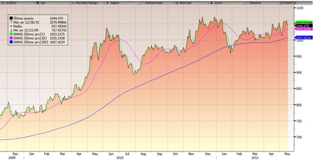 En un escenario en el que Estados Unidos alcanza su límite de deuda, se pone sobre la mesa un nuevo rescate para Grecia sobre la mesa y la inflación de los países emergentes alcanza niveles preocupantes, pensamos que tenemos todos los ingredientes para que la cotización del oro alcance durante los próximos meses precios de 1650 USD/onza, representando cotizaciones por debajo de 1500 USD/onza niveles muy atractivos para tomar posiciones.