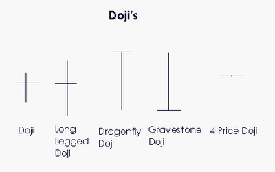 Un Doji, es una vela donde coincide el precio cotizado de la apertura con el del cierre, es decir, no tiene cuerpo. Aunque no esperéis encontrar esta coincidencia precisa ya que en múltiples ocasiones se observa un diminuto cuerpo donde casi no existe diferencia entre el precio apertura y cierre.
