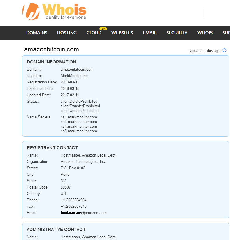 Parece ser que en la nueva disrupción tecnológica aplicada al sistema monetario usted ya ha creído, ya que el dominio de amazonbitcoin.com ya ha adquirido, a la siguiente prueba gráfica nos remitimos