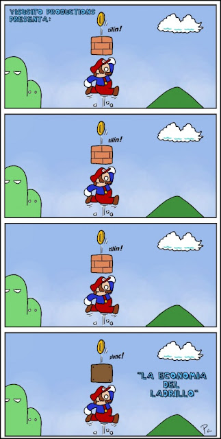 Me he encontrado esta divertida viñeta en la red que resume con tremenda simplicidad como se ha desarrollado la burbuja inmobiliaria en España: