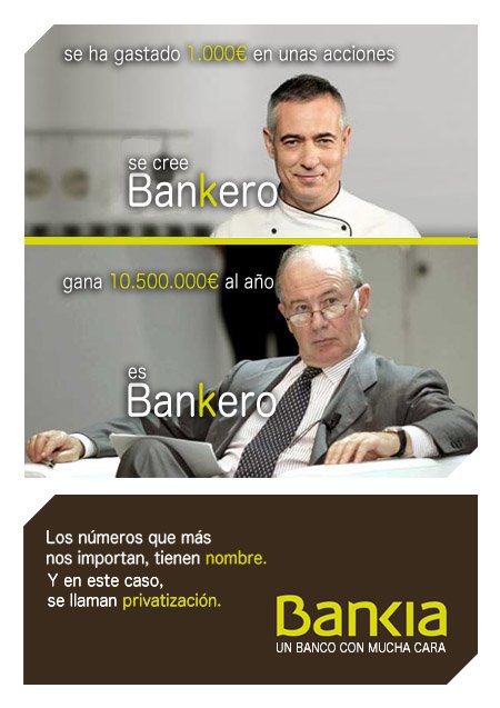 Llevo varias semanas sin escribir por culpa de un trabajo que me absorve más allá de lo que la salud recomienda, pero esta imagen tenía que traerla al blog. ¿En qué se diferencia creerse y ser un banquero? Muy fácil: