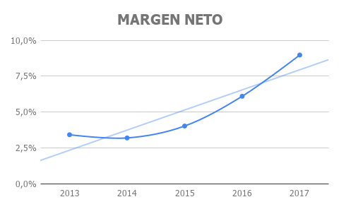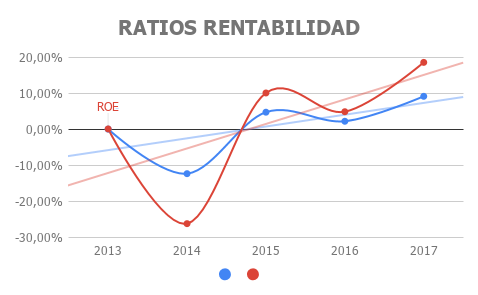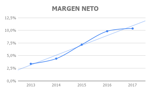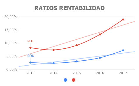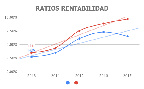 El aumento de los ratios de rentabilidad en los últimos años es espectacular duplicando ROE y ROA y triplicando el margen neto.