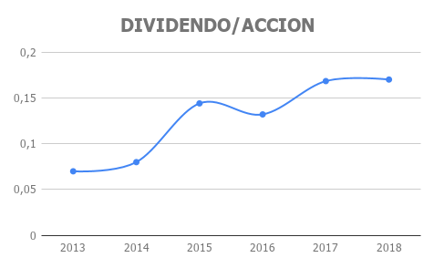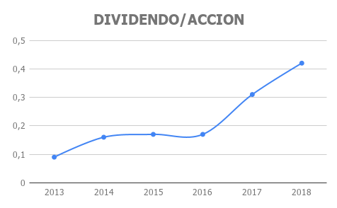 El crecimiento del dividendo ha sido impresionante, pasando de los 0.09€ en 2013 a 0.42€ en 2018, un aumento del 366% en 5 años.