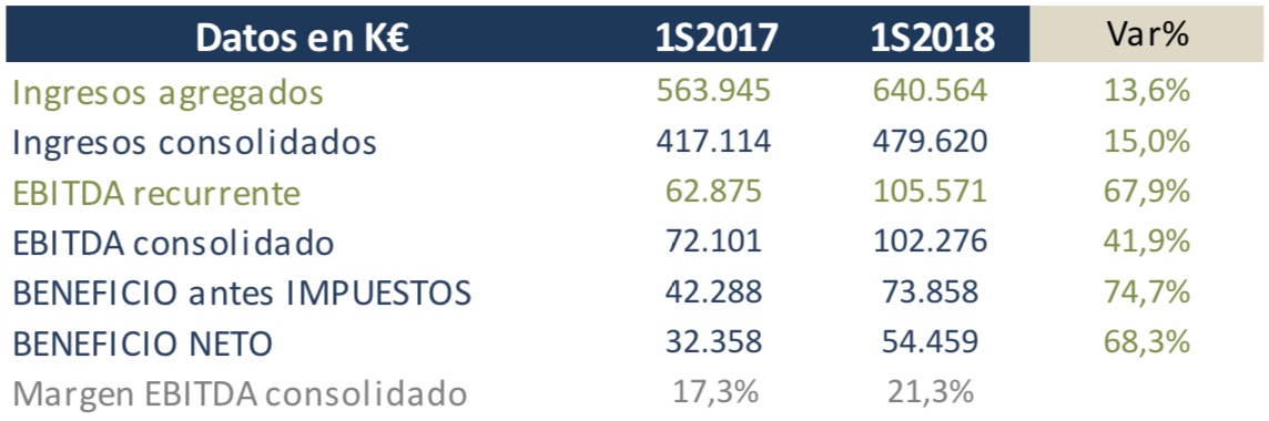 Los resultados del primer semestre del 2018 en comparación con los del año pasado también son muy buenos, como se puede ver en el resumen adjunto ha mejorado todos los ratios financieros y el beneficio lo ha incrementado un 68%.
