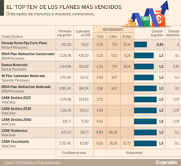 A modo comparativo, en la tabla se pueden ver las comisiones de los 10 planes de pensiones más vendidos en España: