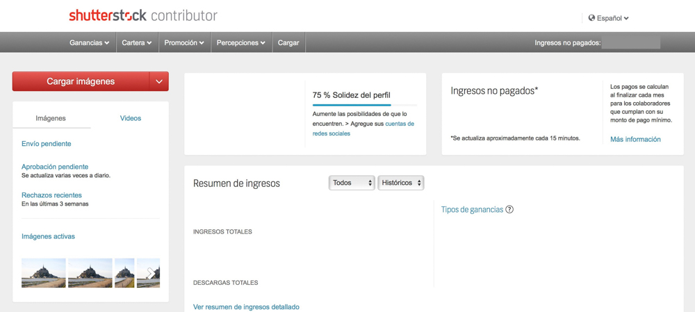 - Haciendo clic en Cargar imágenes iremos introduciendo nuestras fotos en el servidor de Shutterstock (las fotografías deben tener al menos 4 Mpixeles).