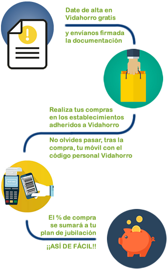 Se trata de las aplicaciones PENSUMO y VIDAHORRO, el objetivo de estas aplicaciones es hacer que el ahorro para la jubilación salga del consumo, trabajan con empresas como Amazon, Desigual, Ali Express, La Casa del Libro y muchas más y dedican un porcentaje de las compras a un plan de ahorro.