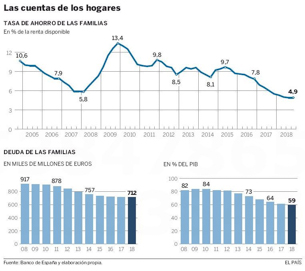 Actualmente, según datos del Instituto Nacional de Estadística (INE), en la primera mitad de 2018, la tasa de ahorro de las familias españolas cayó por debajo del 5%, un nivel excepcionalmente bajo si se compara con el resto de y, sobre todo, si tenemos en cuenta que en 2017 era del 5,8%.