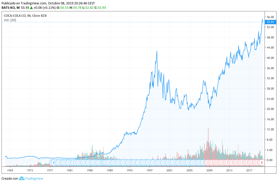 Pero no fue hasta la época de los 1980 cuando los inversores decidieron apostar fuertemente por la compañía y el precio de la acción comenzó a subir. De hecho, el precio no paró de subir y multiplico su valor más de 40 veces el precio que marcaba a principios de 1985.