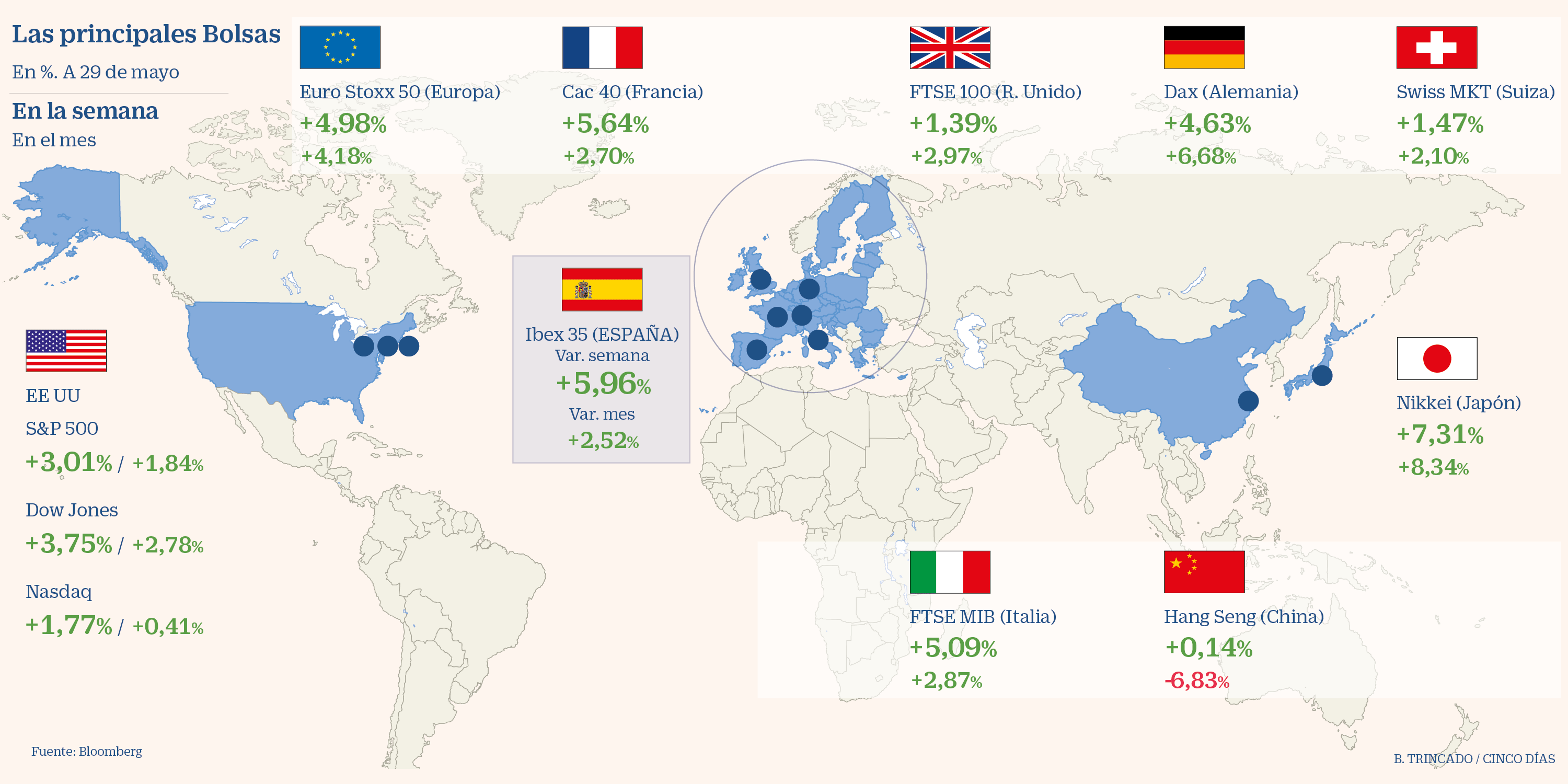 Las bolsas europeas continúan siendo las que más están acusando el impacto con caídas cercanas al 20% en sus principales mercados, destacar el Ibex35 que es el que más ha descendido en lo que llevamos de año con un 26,65% seguida por el FTSE Londinense con un 24.02%.