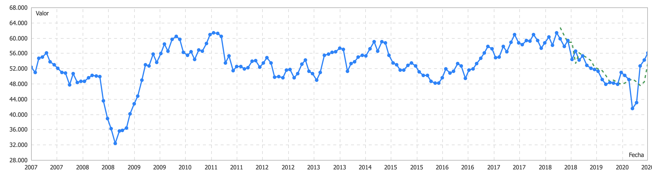 En el último ISM, la puntuación fue de 56, lo cual augura un futuro tendente a la recuperación después de la gran caída sufrida en el mes de marzo donde se alcanzaron valores cercanos a 40.