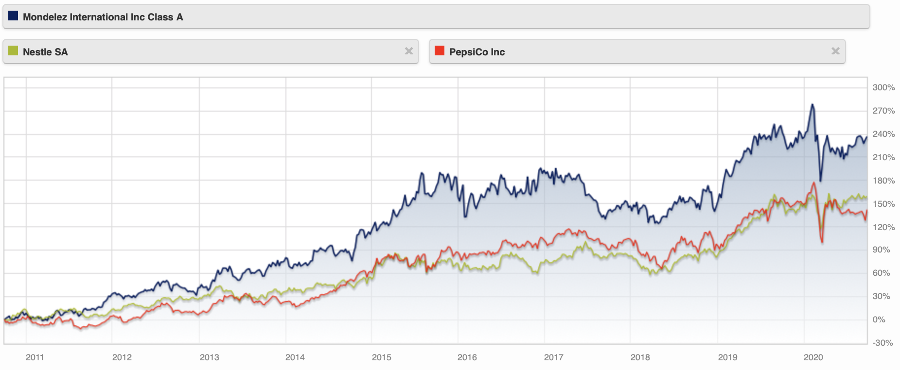 Algunas de las mayores empresas cotizadas del sector de la alimentación pasan inadvertidas para muchos inversores. Entre las diez mayores empresas cotizadas en EE.UU. que tienen un peso importante del negocio alimentario en sus cuentas se encuentran: Amazon, Walmart, McDonalds, Costco, Starbucks, Mondelez, Target, Kraft Heinz, Sysco y Yum! Brands.