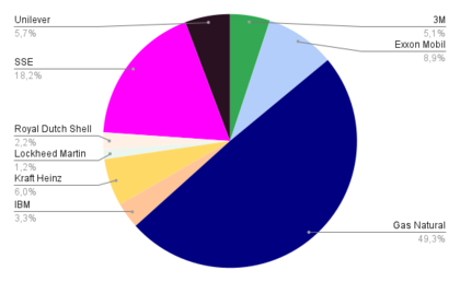 Endesa vuelve a recuperar la primera posición (58.5%) desbancando a AbbVie (57.7%), a la que se le acerca rápidamente Omega HelathCare (50.5%) y SSE (48.7%).