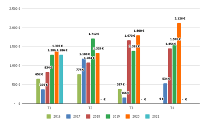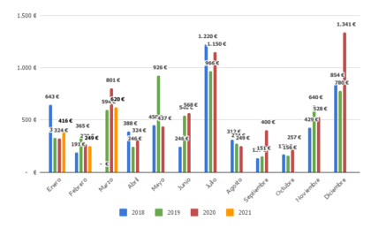 En el acumulado del año alcanzamos la cifra neta de 1285.59€. Una media de 428.53€/mes.