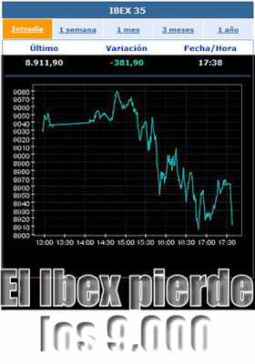 Nueva jornada negra en todas las bolsas europeas. El Ibex 35 baja hoy un 4,11% perdiendo la cota psicológica de los 9.000 puntos por primera vez en noviembre y cerrando en 8.911 puntos.