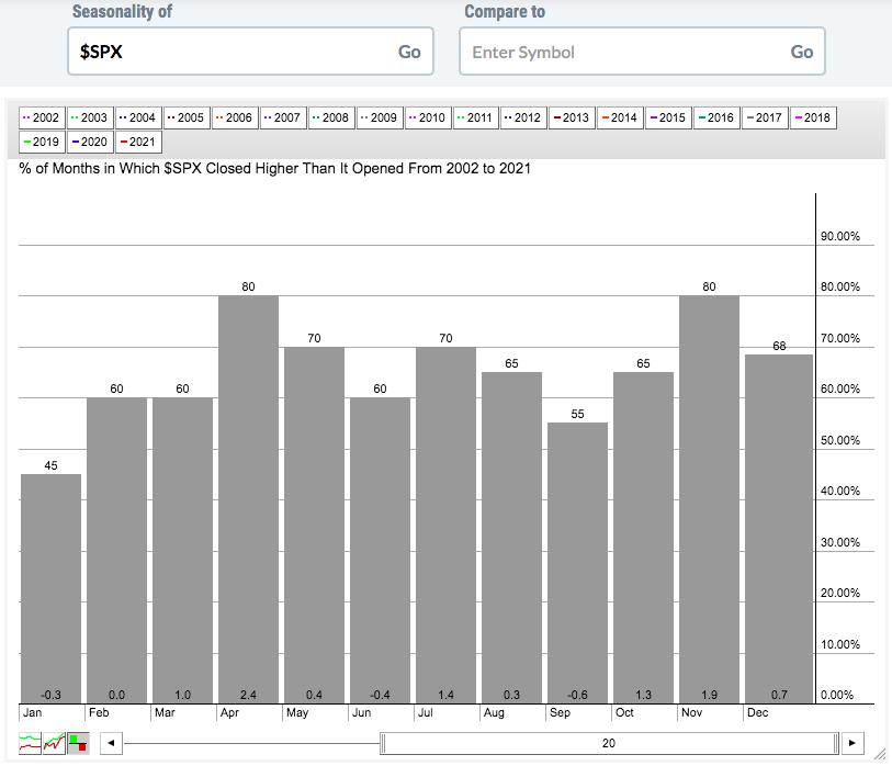 Noviembre es un mes extremadamente alcista y este principio de mes lo confirma. Durante la última década, el S&P 500 ha hecho pleno. Si retrocedemos. 20 años, el S&P 500 ha subido más del 80% de todos los noviembre. . Aquí está la tabla de estacionalidad de veinte años. décadas: