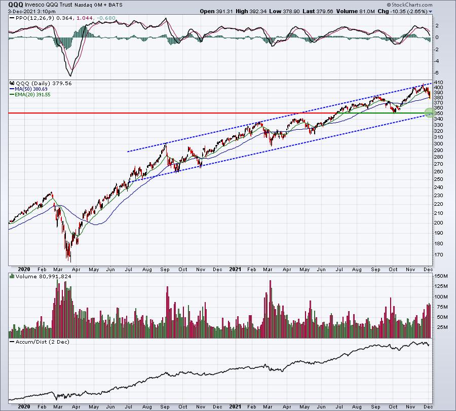 Echemos un vistazo al QQQ (ETF que rastrea el NASDAQ 100) para ver hacia dónde nos dirigimos: