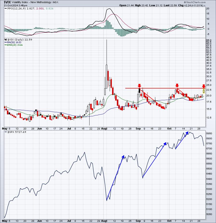 A largo plazo mantendría mi planificación financiera y mis inversiones pero, para los Géminis como yo, preservar el capital durante los períodos volátiles es algo que me esfuerzo por hacer. Sé por mi amigo americano que el PEOR momento absoluto para operar en el lado largo es cuando el VIX está por encima de 20 y subiendo, que es el caso en este momento. El nivel de 23,00-23,50 ha sido un área donde el VIX ha tocado techo durante los meses de verano en 2 ocasiones distintas: