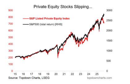 Las acciones de capital privado cotizadas han caído un 13%, otro presagio bajista.