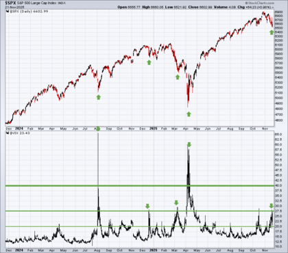 La caída del jueves tras el informe de resultados de Nvidia arrastró al SPX hasta poner a prueba nuestra línea de base en torno a los 6550. El repunte del viernes confirmó una vez más la importancia de este importante nivel de soporte para el S&P.