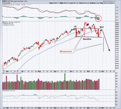 No puedo descartar más caídas, especialmente si vemos que el S&P 500 y el NASDAQ 100 suben hasta alcanzar la resistencia superior en su media móvil exponencial (EMA) de 20 días o su media móvil simple (SMA) de 50 días, para establecer hombros derechos y luego caer. Lo interesante de la posible medición del patrón de cabeza y hombros es que llevaría al S&P 500 a una caída aproximada al nivel en el que rompió al alza en junio de 2025, por encima de su resistencia previa de 6144. ¿De qué depende todo?