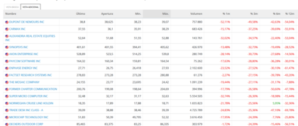 Les dejo con la tabla de valores ordenados por rentabilidad negativa a 12 y 1 mes.