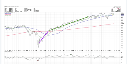 El mercado parece haber entendido esto y se ha dado cuenta de que existen otro tipo de empresas que se benefician de la I.A, pero sin invertir en su desarrollo. Las 7 magníficas necesitan un periodo de reflexión y el dinero gira a productos como el RSP (SP equiponderado).