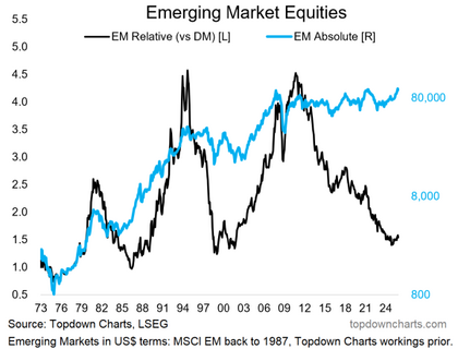 Si sigue la depreciación del dólar , emergentes lo pueden seguir haciendolo bien dadas las valoraciones.