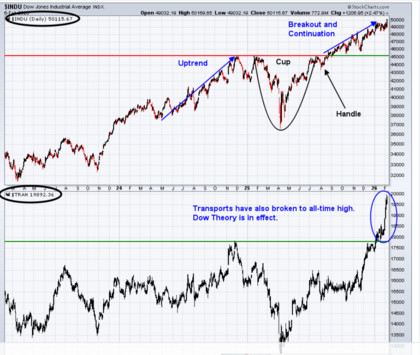 - El Promedio de Transporte Dow Jones ($TRAN) también está subiendo, una señal de que la economía sigue siendo fuerte.