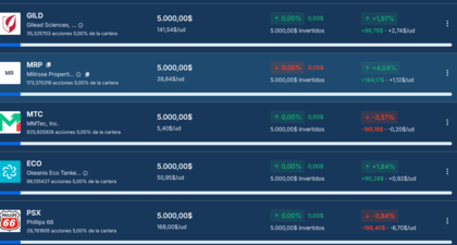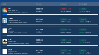 Gracias a nuestra nueva aplicación de portfolio podemos crear uno nuevo de empresas que paguen dividendo y coticen en dólares en USA.