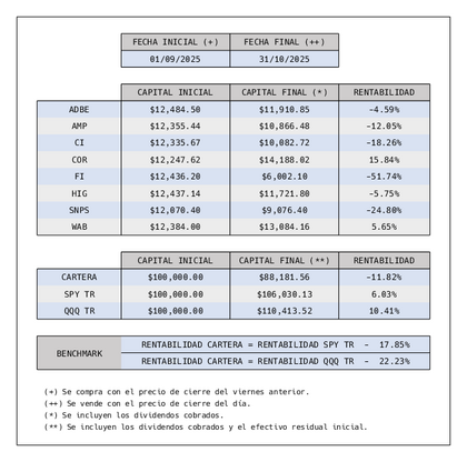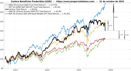Rebalanceo Nov/25. Mercado extremadamente difícil, cartera pasa a 25% en efectivo, no hay donde invertir, -12% cartera vs +10% QQQ, qué esperar de la burbuja IA.