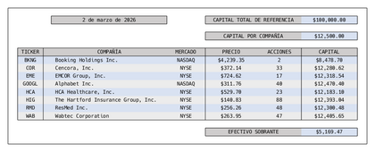 Rebalanceo marzo/2026. Cambios profundos en la cartera. Entran BKNG, EME, GOOGL, HCA y RMD.
