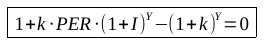 Segundo. Se calcula el número de años de retorno de la inversión (Y) en base a los beneficios normalizados teniendo en cuenta su crecimiento y la inflación, calculando Y en la siguiente expresión en donde I es el valor de inflación (o alternativamente tipo de interés) y PER es Precio/EPS actual: