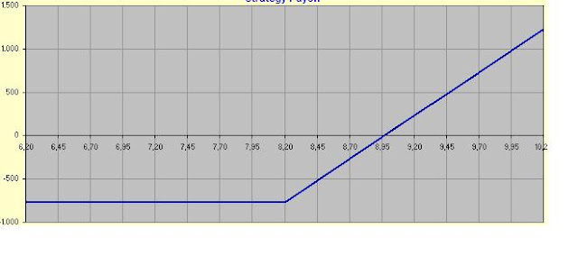 - comprar opciones de vencimiento a largo plazo: la put 8,16 Vencimiento Diciembre de 2011 cotiza a 1,62. Esto quiere decir que pagamos un 20% por una cobertura de unos 6 meses. Si en 6 meses la acción no baja habriamos perdido un 20% del capital. Para que la cobertura sea rentable el mercado tiene que bajar mas del 20% en menos de 6 meses.