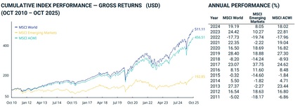 Rentabilidad acumulada del MSCI World (2010–2025)