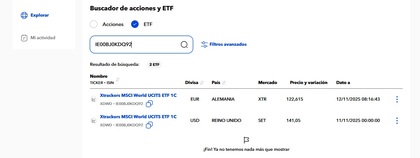 Abre MyInvestor y accede al buscador. Escribe “MSCI World” o el ISIN del producto que te interese, como IE00BJ0KDQ92 (por ejemplo, el Xtrackers MSCI World UCITS ETF 1C).