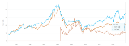 Hasta hace unos meses, el MSCI Turquía llevaba el doble del rendimiento del SP500 en lo que iba del 2024. Muchos pensaban que ese tren ya se había ido y era muy tarde para tener exposición a ese país. De hecho, mencioné a Turquía en el artículo Mejores y peores países para invertir en ETFs gracias a que tenía una de las valoraciones más bajas y además una tendencia alcista (al menos hasta mediados de julio) que ya llevaba desde inicios del 2024.