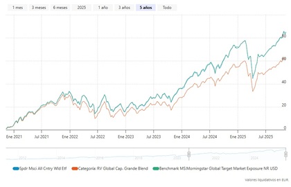 Por tanto, este ETF es una alternativa algo más barata al de iShares, con una filosofía prácticamente idéntica y una gestión eficiente por parte de SPDR (State Street). Ideal para quienes buscan exposición global al menor coste posible.