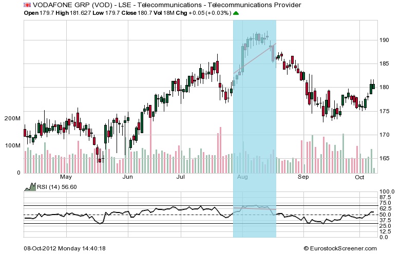 En el área sombreada de azul celeste es el área que corresponde con la divergencia alcista que nos aportó el RSI(14). Se observa que, mientras la cotización del activo seguía marcando minimos descendentes el RSI(14) en ningún momento marcó una tendencia negativa durante el mismo periodo de tiempo. Vemos como la divergencia alcista que nos anticipó el oscilador RSI(14) se resolvió al alza con una tendencia fuertemente alcista.
